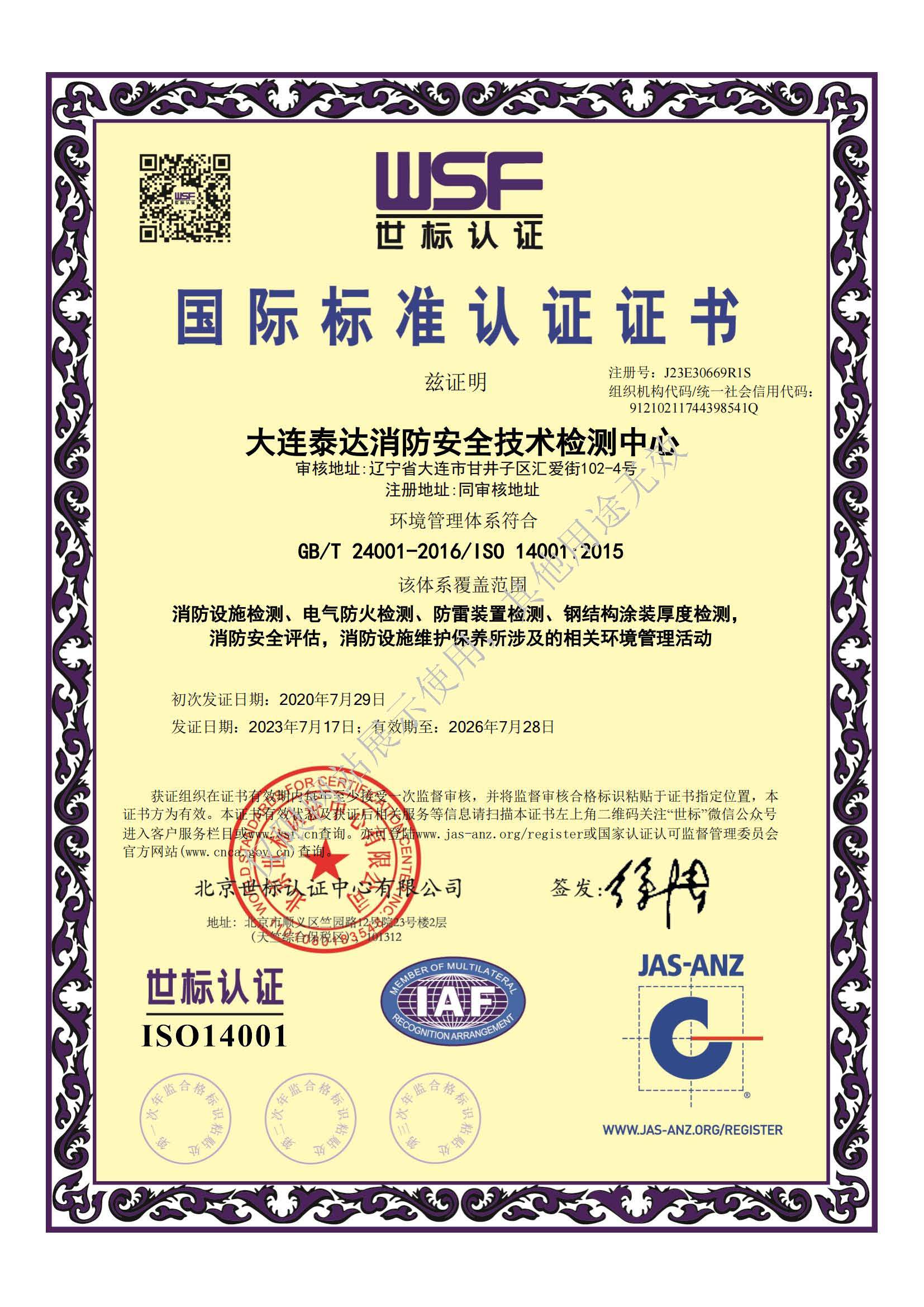 · 是經(jīng)“社會消防技術(shù)服務(wù)信息系統(tǒng)”備案并公示的消防技術(shù)服務(wù)機(jī)構(gòu),已取得中國氣象局頒發(fā)的雷電防護(hù)裝置檢測資質(zhì)證書、遼寧省質(zhì)量技術(shù)監(jiān)督局審核批準(zhǔn)的檢驗(yàn)檢測機(jī)構(gòu)資質(zhì)認(rèn)定證書(CMA)及包括消防檢測、電氣檢測、雷電防護(hù)裝置檢測、防火涂層厚度檢測等在內(nèi)的200余項(xiàng)檢驗(yàn)檢測能力,取得大連市應(yīng)急管理局頒發(fā)的安全生產(chǎn)標(biāo)準(zhǔn)化證書,獲得質(zhì)量管理體系、環(huán)境管理體系、職業(yè)健康安全管理體系認(rèn)證證書,是經(jīng)備案的高新技術(shù)企業(yè),可獨(dú)立出具具有證明作用的檢測報告。
